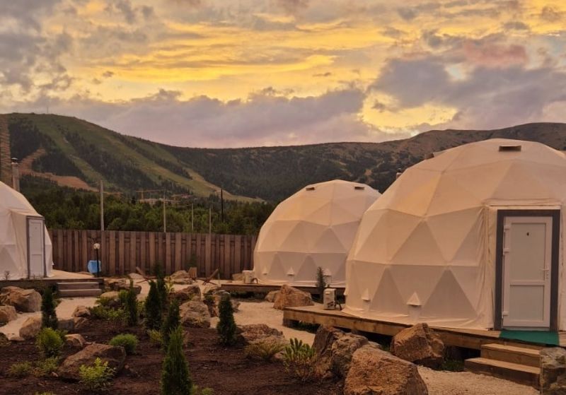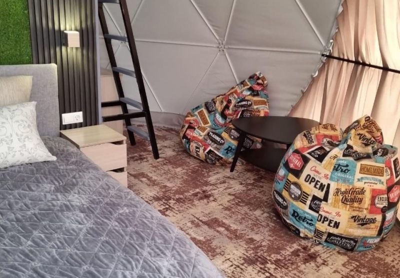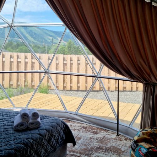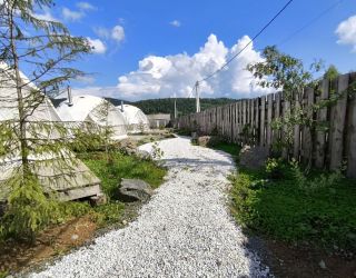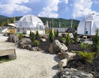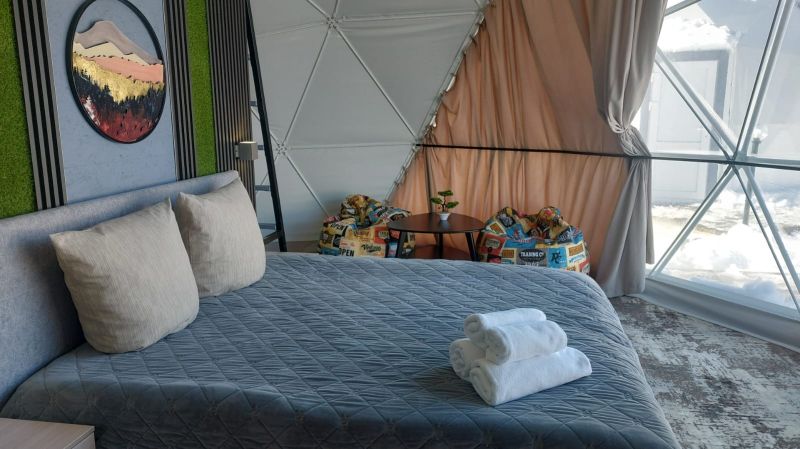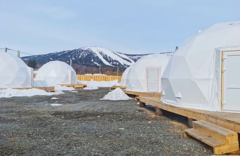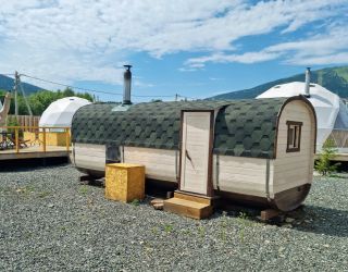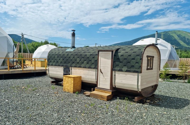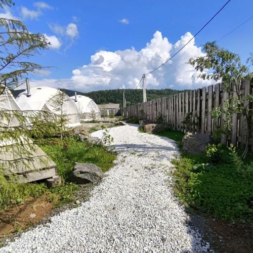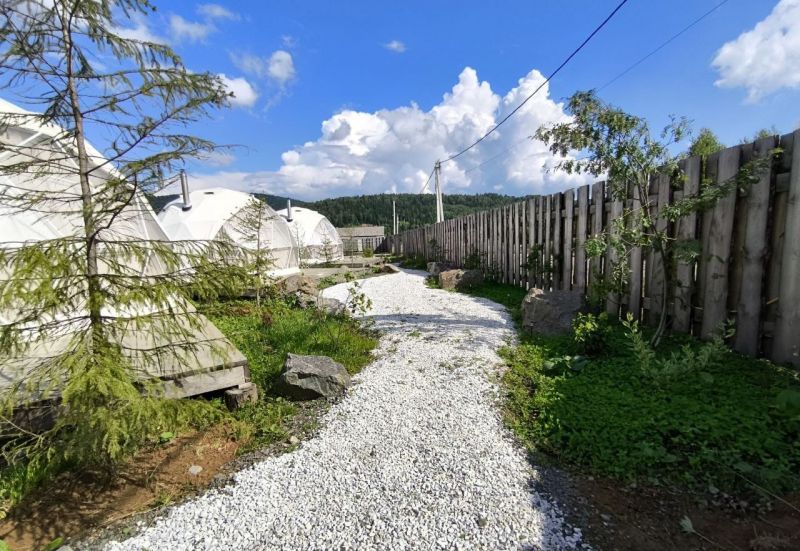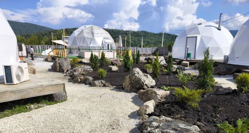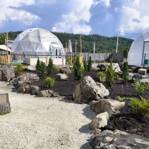 Глэмпинг – отличный вариант для тех, кто любит быть ближе к природе, но не готов отказаться от комфорта. Он находится в окружении живописной сибирской природы, отовсюду открываются панорамные виды на горы. Комплекс расположен на закрытой территории и включает в себя 5 отдельно стоящих купольных дома с террасами. Дома полностью оборудованы для круглогодичного проживания – оборудованы печами-камины, теплыми полами, установлены кондиционеры, везде предусмотрена своя ванная комната с душевой кабиной, есть необходимая мебель и техника: холодильник, электрочайник, фен.