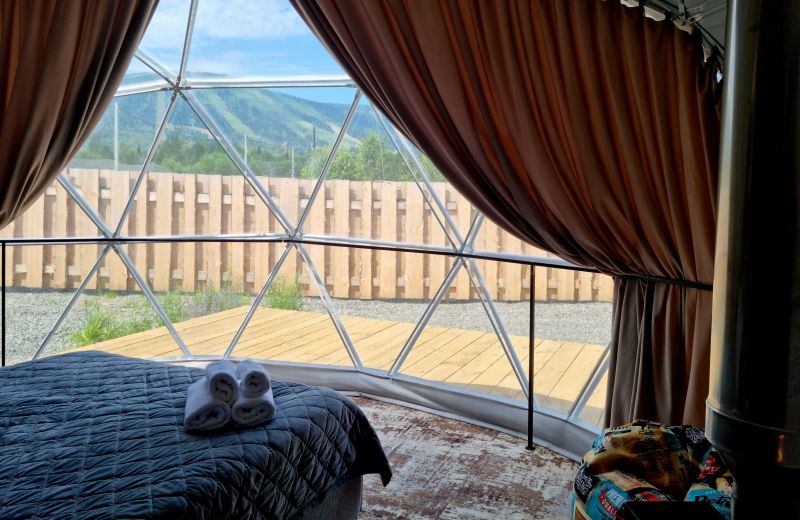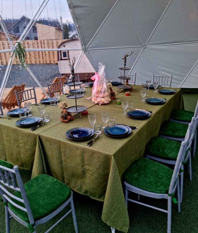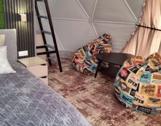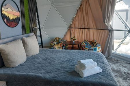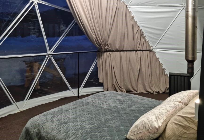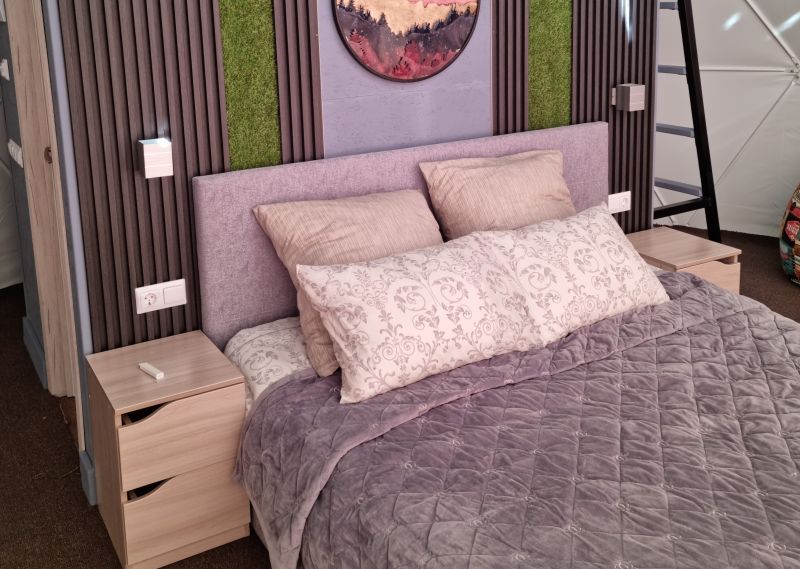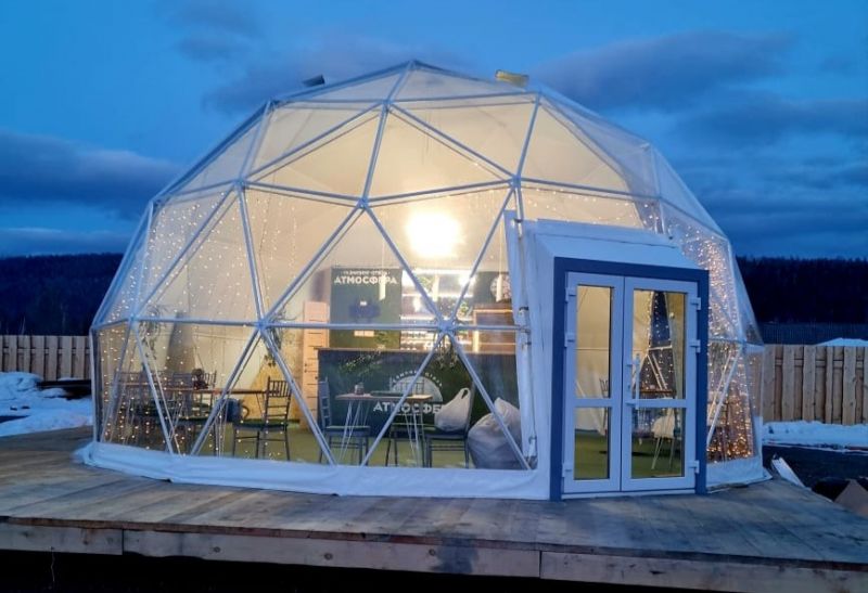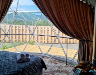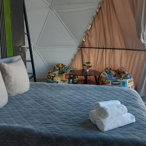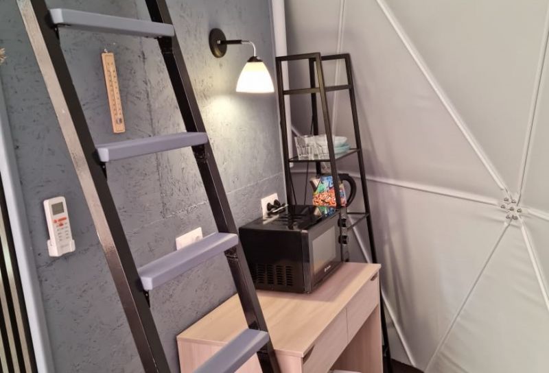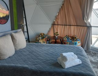 Глэмпинг – отличный вариант для тех, кто любит быть ближе к природе, но не готов отказаться от комфорта. Он находится в окружении живописной сибирской природы, отовсюду открываются панорамные виды на горы. Комплекс расположен на закрытой территории и включает в себя 5 отдельно стоящих купольных дома с террасами. Дома полностью оборудованы для круглогодичного проживания – оборудованы печами-камины, теплыми полами, установлены кондиционеры, везде предусмотрена своя ванная комната с душевой кабиной, есть необходимая мебель и техника: холодильник, электрочайник, фен.