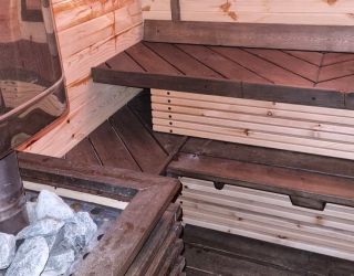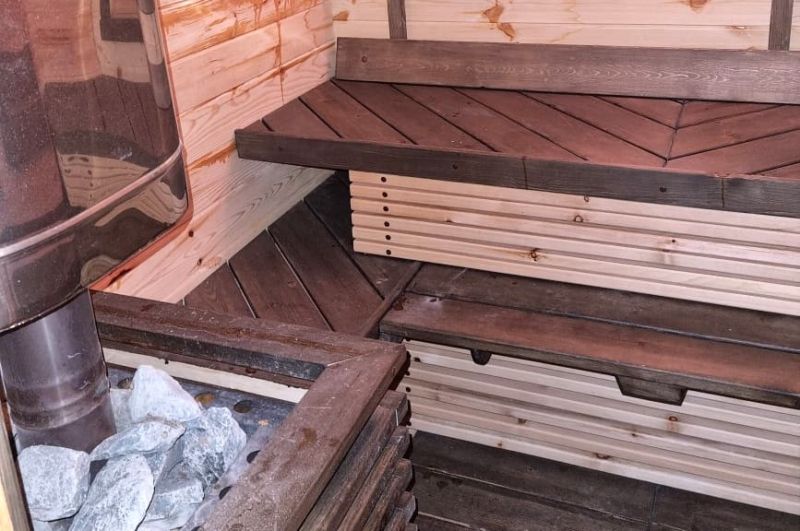 На территории комплекса работает кафе, рассчитанное на 15–20 человек, есть небольшая баня-бочка, где можно погреться и расслабиться после насыщенного дня.